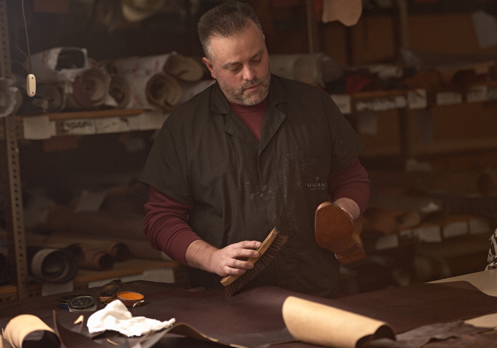 O coração da nossa marca está nas mãos experientes dos nossos artesãos. Todos trabalham internamente no nosso atelier da Mariano Shoes, no norte de Portugal, garantindo total transparência na produção, desde o corte até ao acabamento. Honramos o seu ofício oferecendo uma remuneração acima da média do setor e condições de trabalho de excelência, refletindo o respeito e a gratidão que temos pela nossa equipa. Além disso, aplicamos um rigoroso código de conduta em toda a Mariano Shoes e adotamos uma política de tolerância zero à discriminação.
